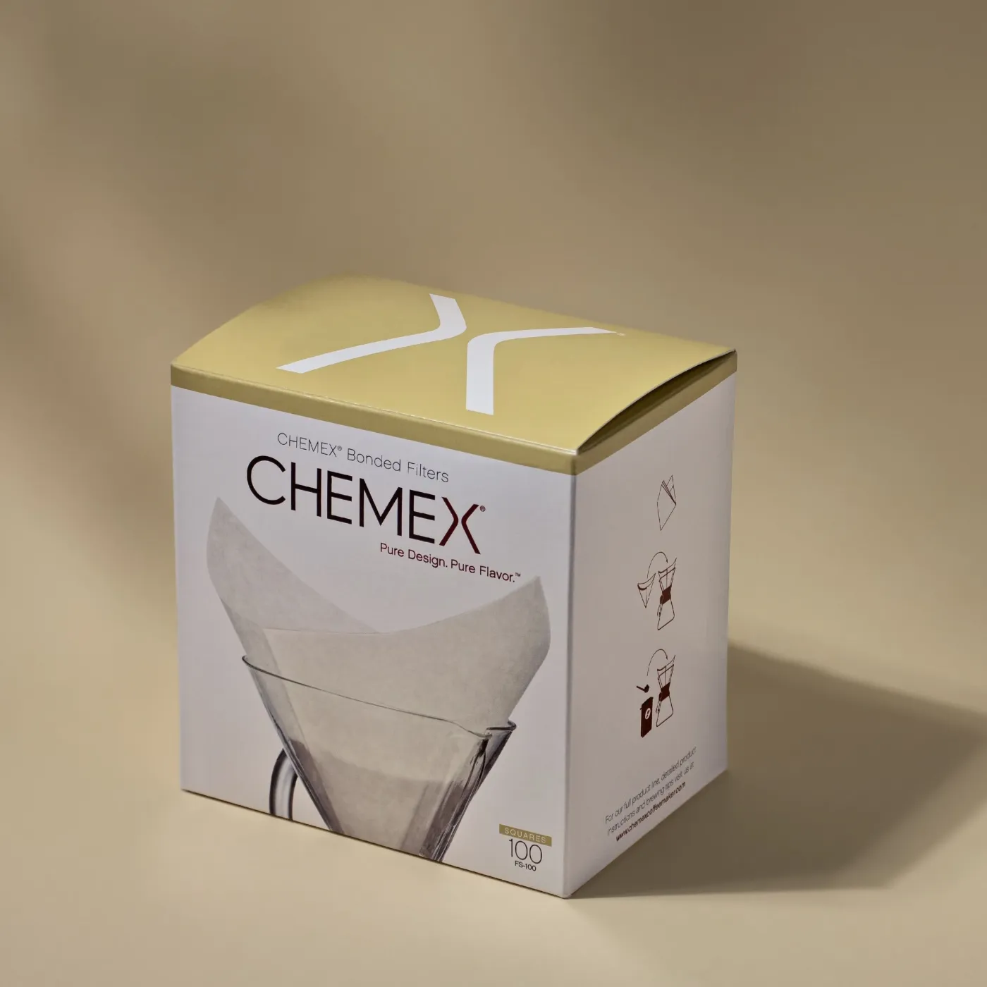 CHEMEX filtry papierowe kwadratowe 6, 8, 10 filiżanek białe - 100 szt.