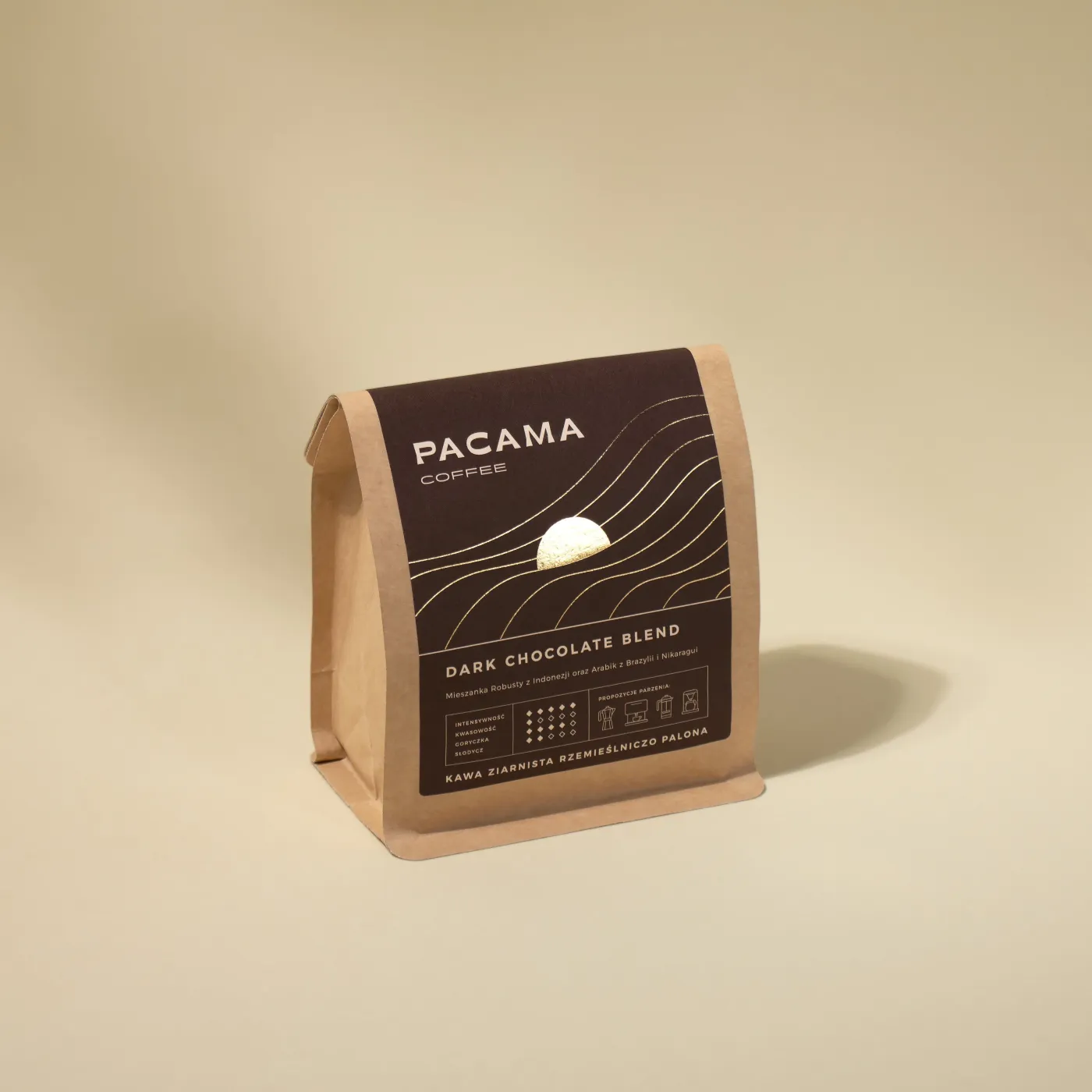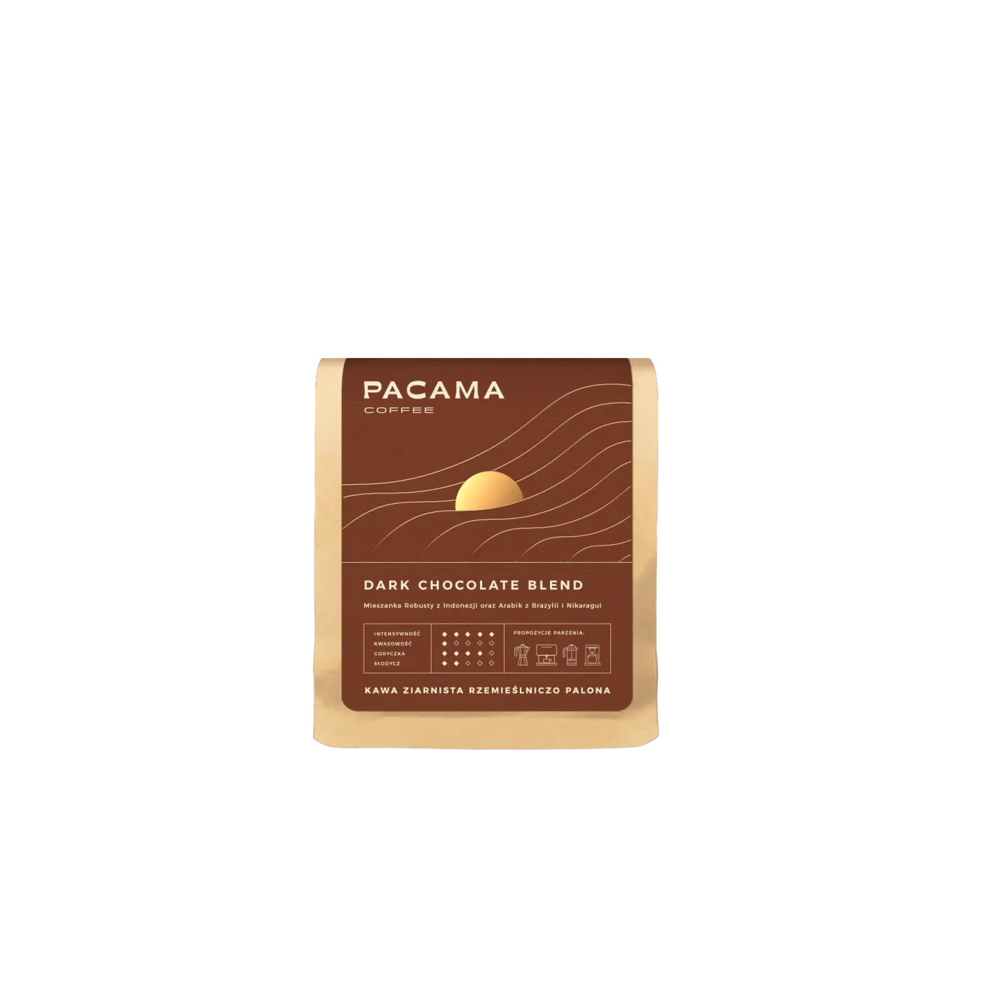 Blend z przewagą indonezyjskiej robusty premium to pozycja dla koneserów kawy we włoskim stylu. Dark Chocolate Blend to intensywna goryczka balansowana przez dodatek brazylijskiej i nikaraguańskiej arabiki, doprawiona długim, przyjemnym posmakiem ciemnej czekolady i orzechów, esencjonalnym dla średnio palonych ziaren.