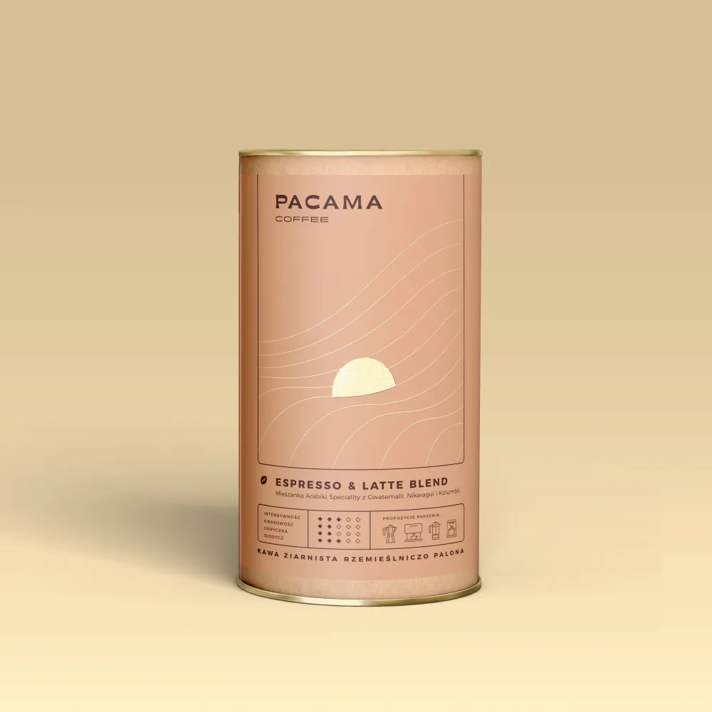 Caturra z Gwatemali doskonale uzupełnia odmianę Catuai z Nikaragui, a całość smaku uszlachetnia wyjątkowo czysta, cielista kolumbijska Typica. Średnio wypalone ziarna nadadzą kawie latte delikatny orzechowo-czekoladowy posmak, którego naturalna słodycz i niska kwasowość sprawdzi się również w espresso.